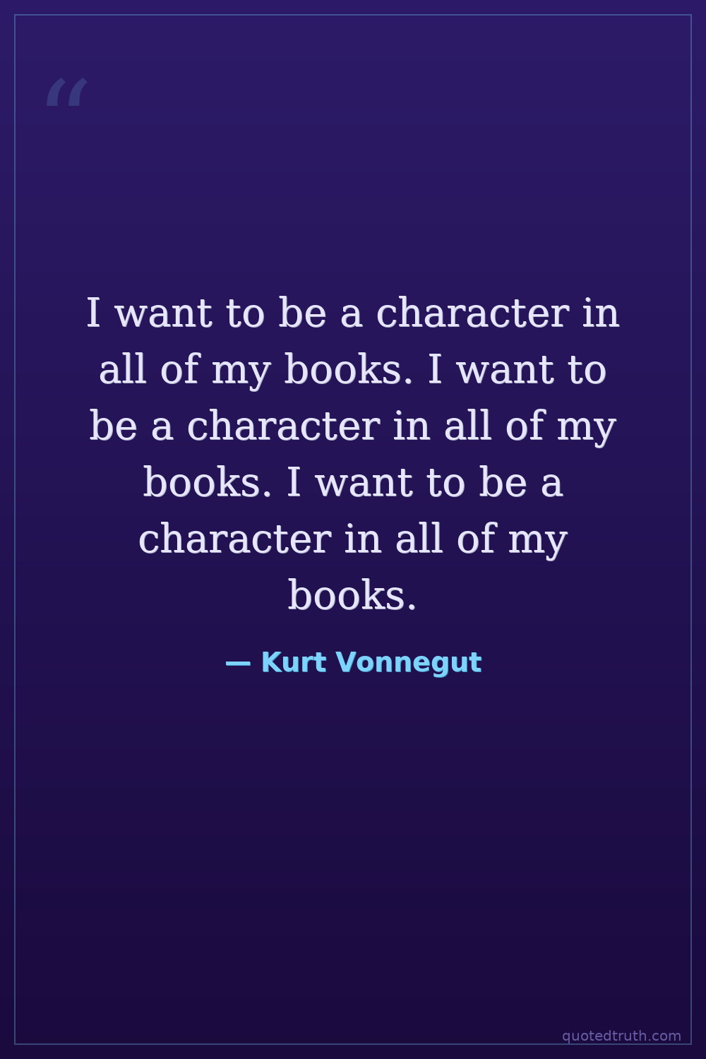 I want to be a character in all of my books. I want to be a character in all of my books. I want to be a character in all of my books.