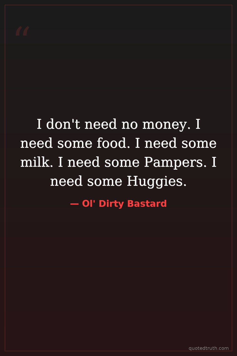 I don't need no money. I need some food. I need some milk. I need some Pampers. I need some Huggies.