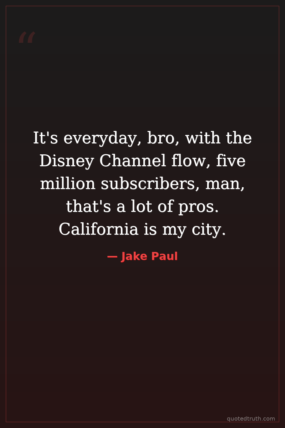 It's everyday, bro, with the Disney Channel flow, five million subscribers, man, that's a lot of pros. California is my city.
