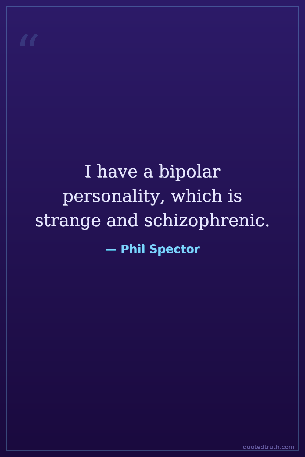 I have a bipolar personality, which is strange and schizophrenic.