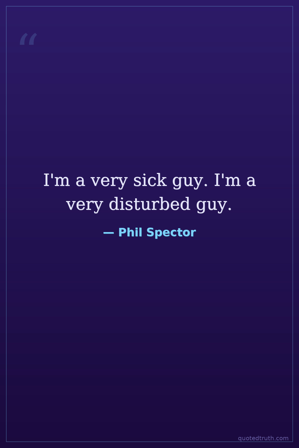 I'm a very sick guy. I'm a very disturbed guy.