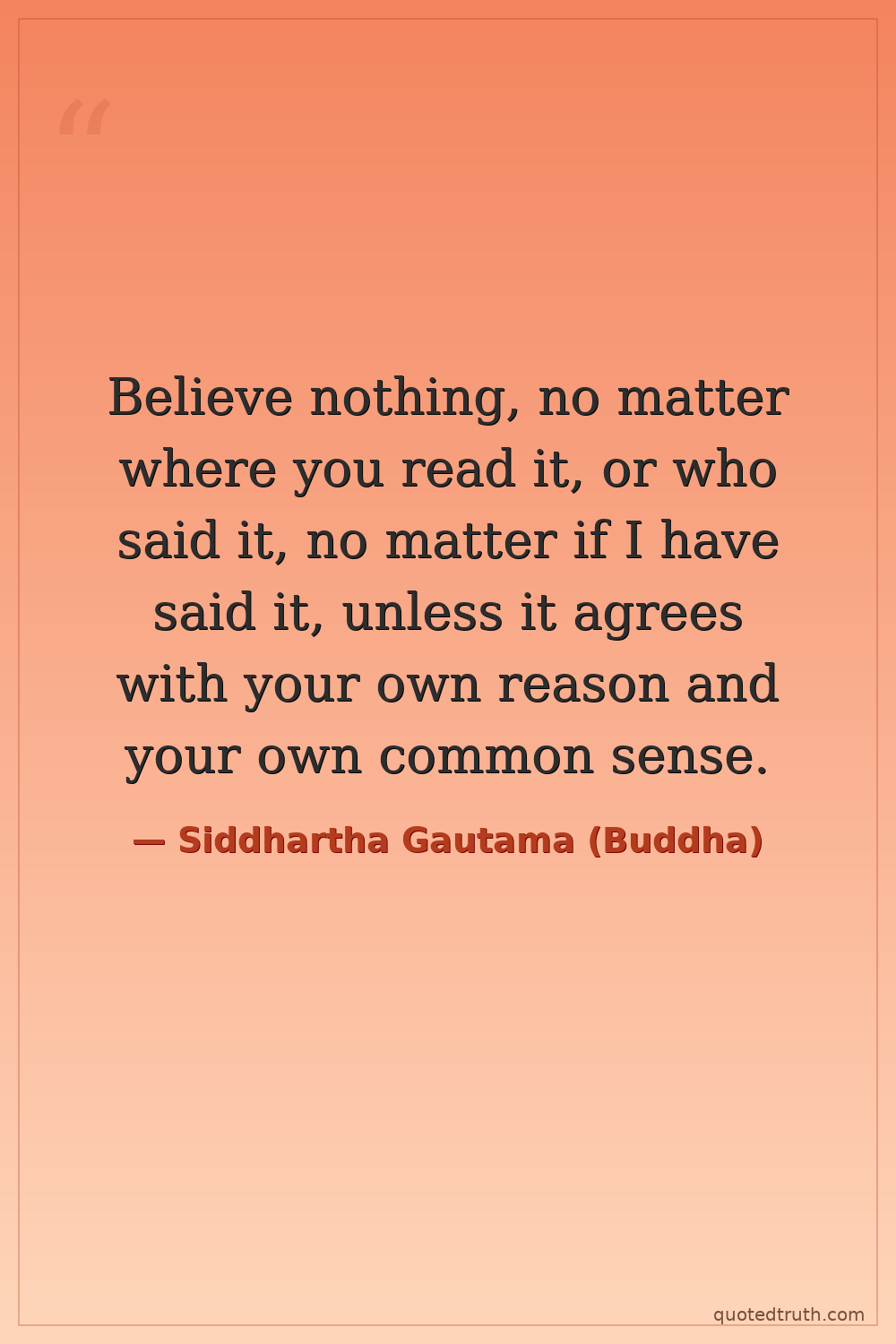 Believe nothing, no matter where you read it, or who said it, no matter if I have said it, unless it agrees with your own reason and your own common sense.
