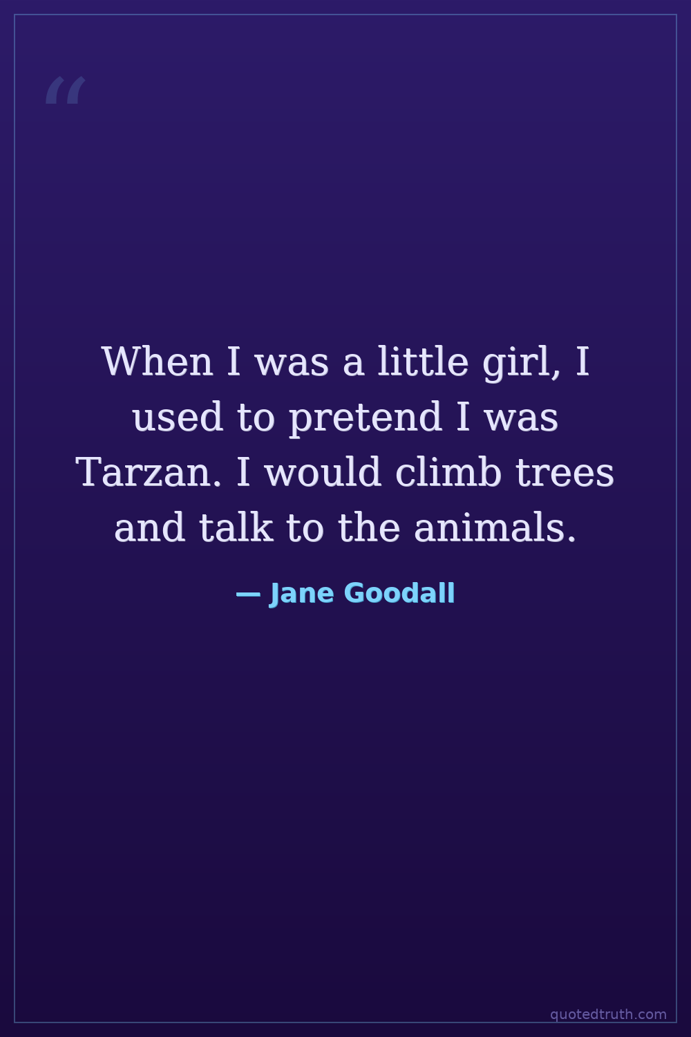 When I was a little girl, I used to pretend I was Tarzan. I would climb trees and talk to the animals.
