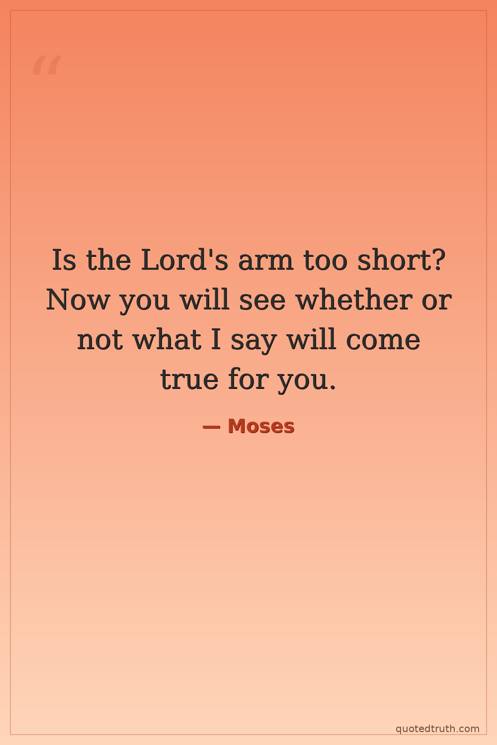 Numbers 11:23, God speaking to Moses, after Moses doubts God can feed the multitude.