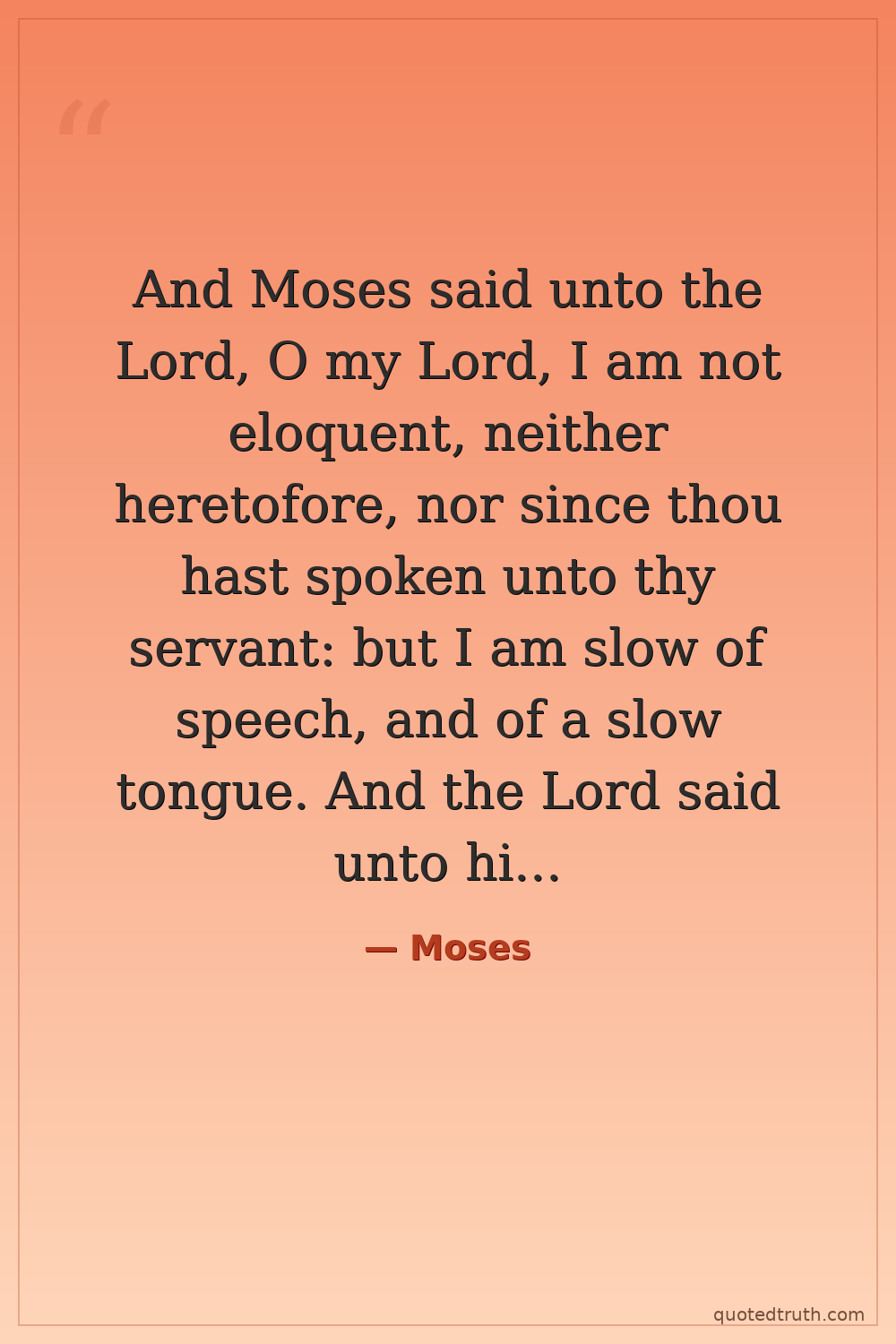 And Moses said unto the Lord, O my Lord, I am not eloquent, neither heretofore, nor since thou hast spoken unto thy servant: but I am slow of speech, and of a slow tongue. And the Lord said unto him, Who hath made man's mouth? or who maketh the dumb, or deaf, or the seeing, or the blind? have not I the Lord? Now therefore go, and I will be with thy mouth, and teach thee what thou shalt say.