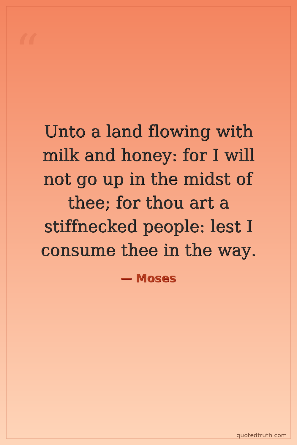 Unto a land flowing with milk and honey: for I will not go up in the midst of thee; for thou art a stiffnecked people: lest I consume thee in the way.