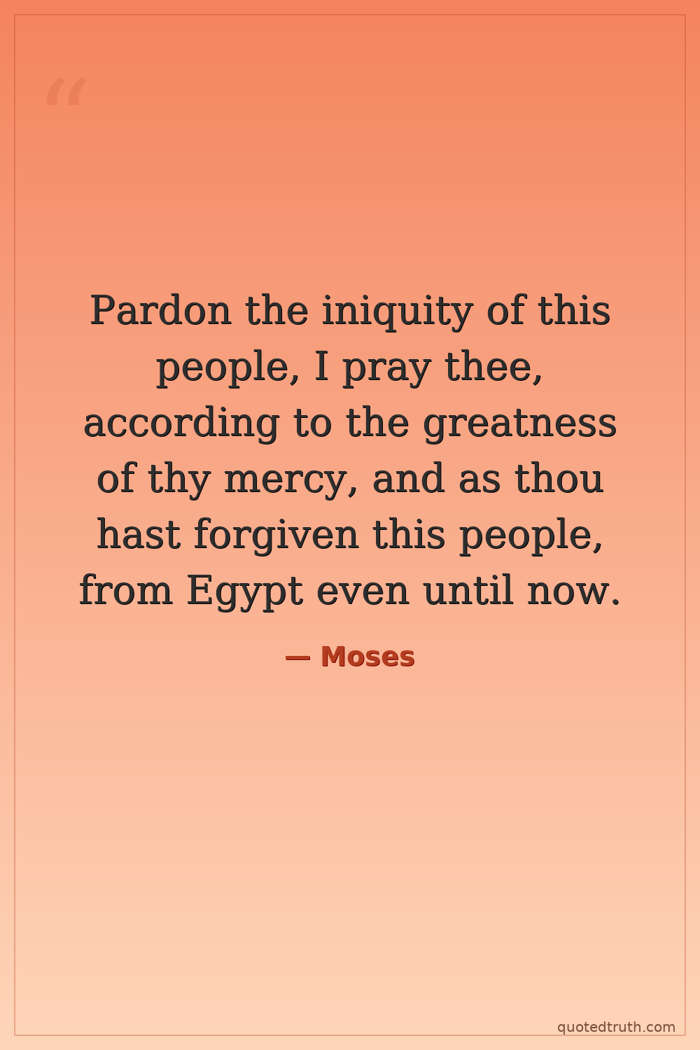 Numbers 14:19, Moses interceding for Israel.
