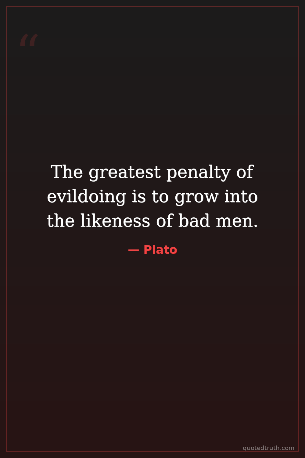 The greatest penalty of evildoing is to grow into the likeness of bad men.
