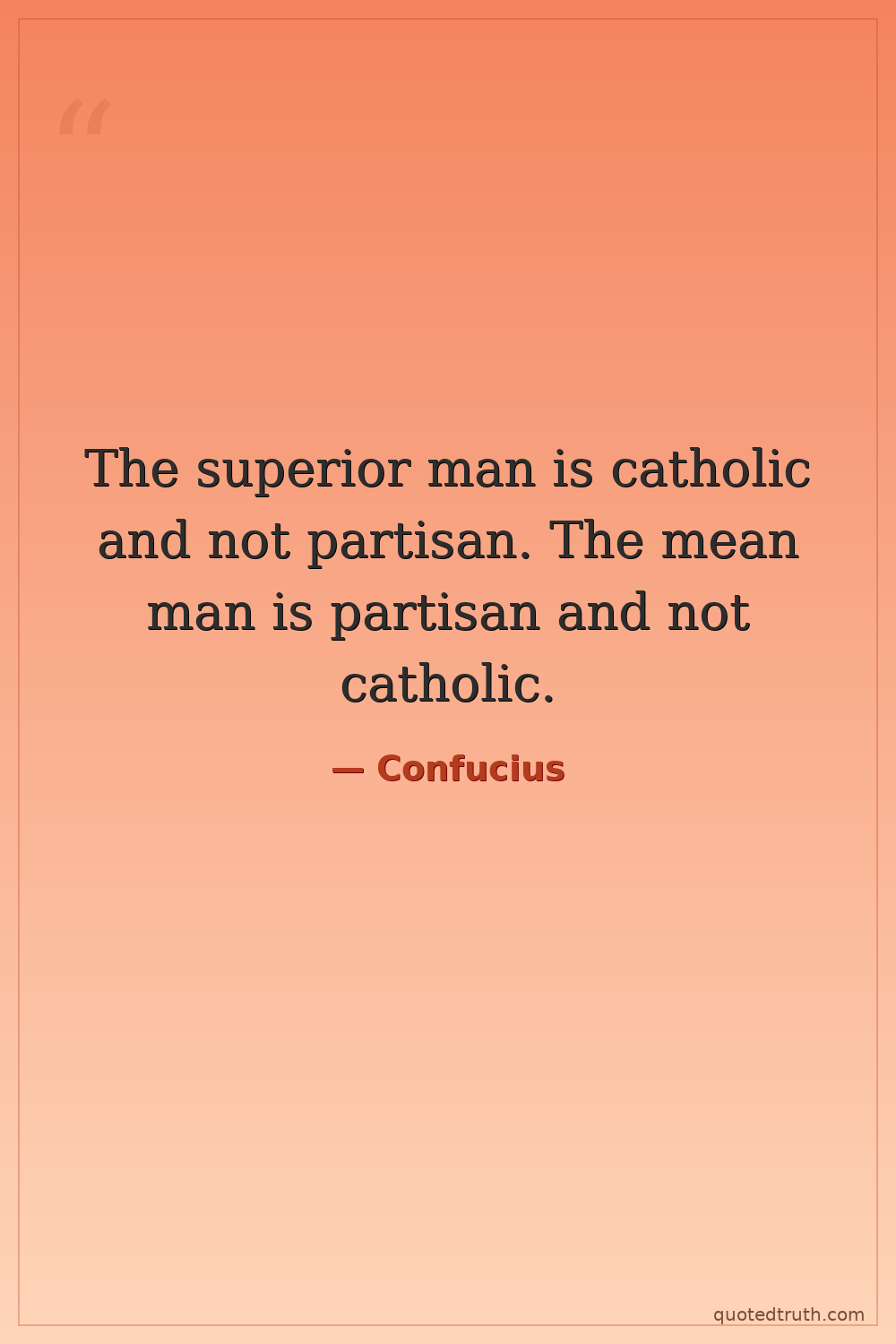 The superior man is catholic and not partisan. The mean man is partisan and not catholic.