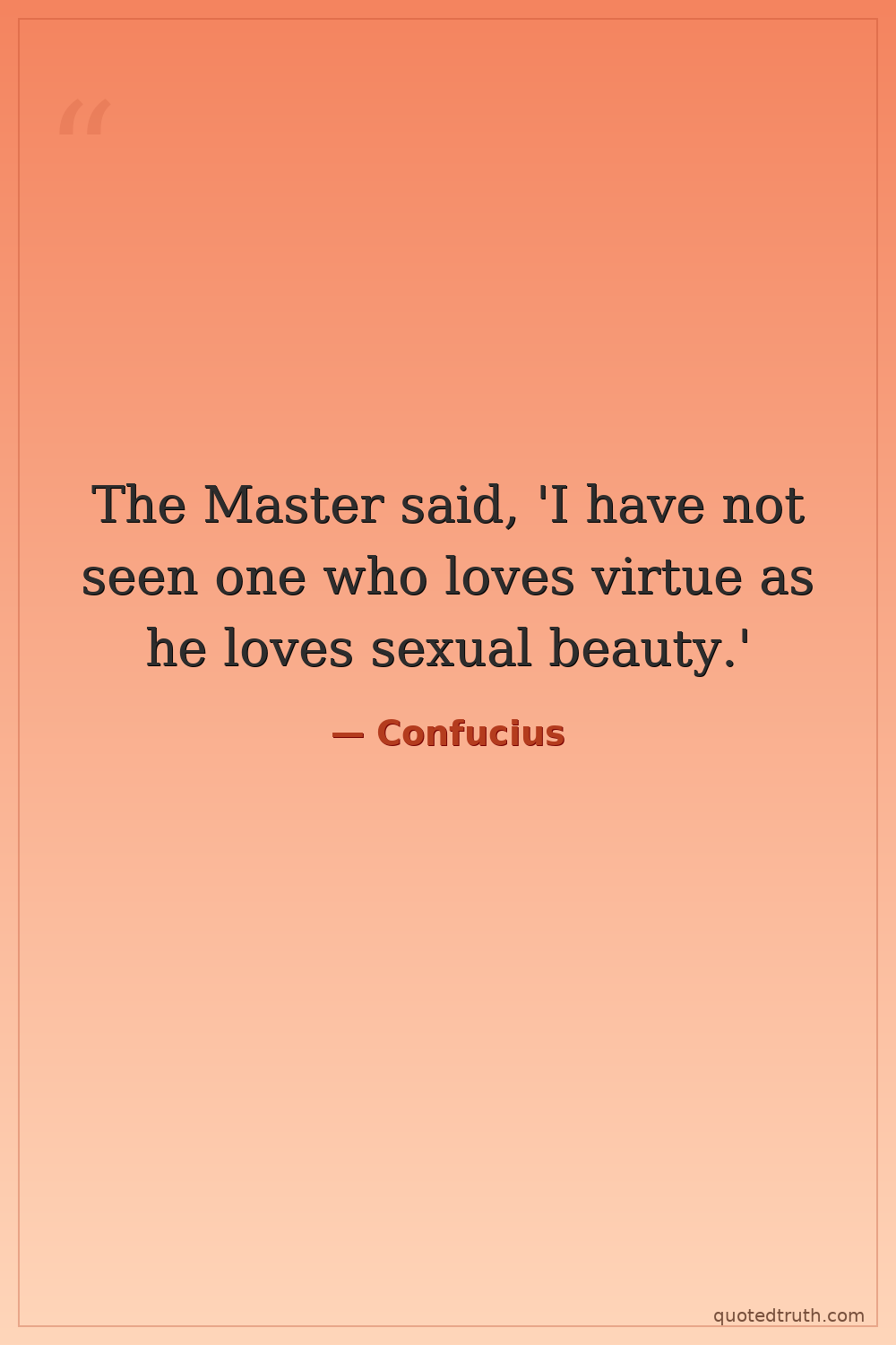 The Master said, 'I have not seen one who loves virtue as he loves sexual beauty.'