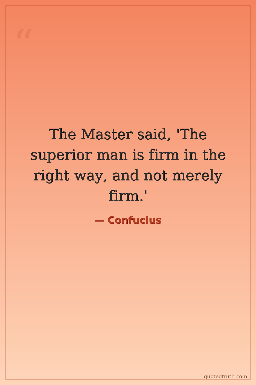 The Master said, 'The superior man is firm in the right way, and not merely firm.'