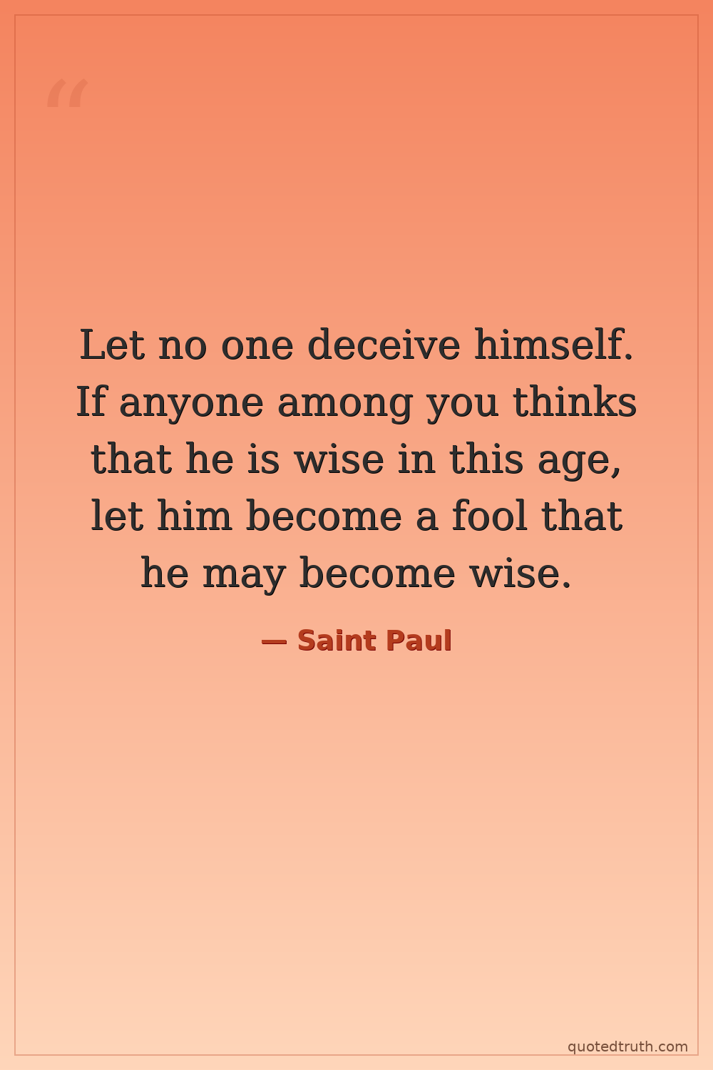 Let no one deceive himself. If anyone among you thinks that he is wise in this age, let him become a fool that he may become wise.