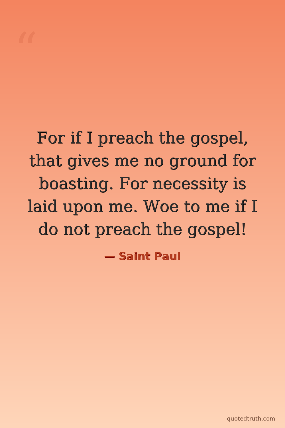 For if I preach the gospel, that gives me no ground for boasting. For necessity is laid upon me. Woe to me if I do not preach the gospel!