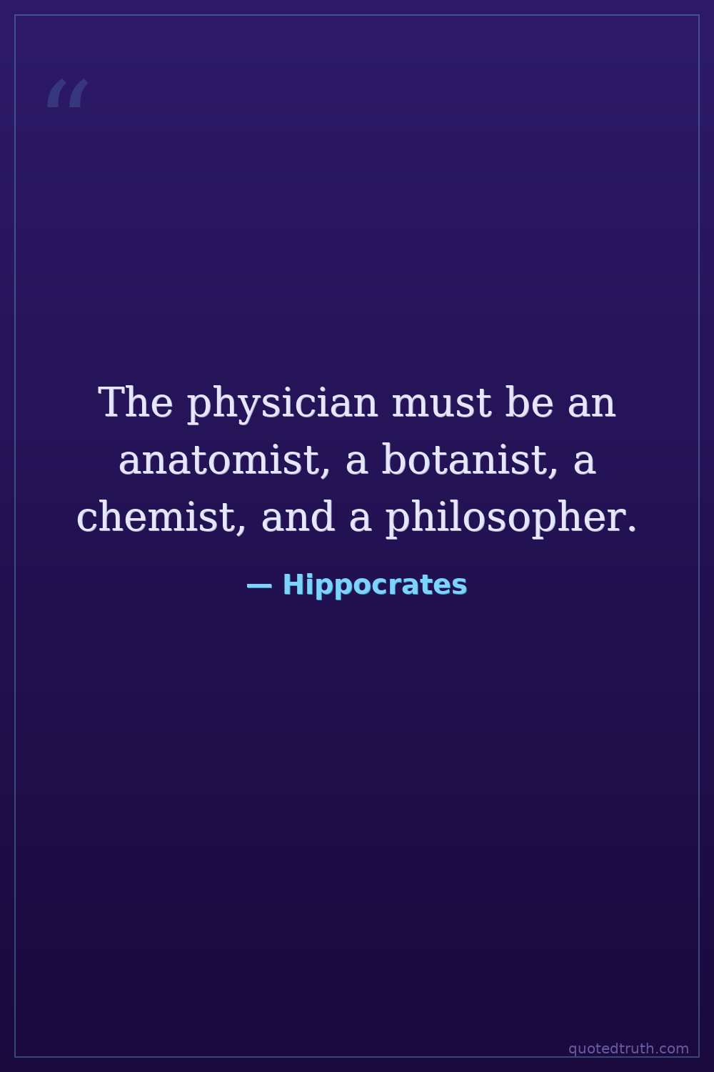 The physician must be an anatomist, a botanist, a chemist, and a philosopher.