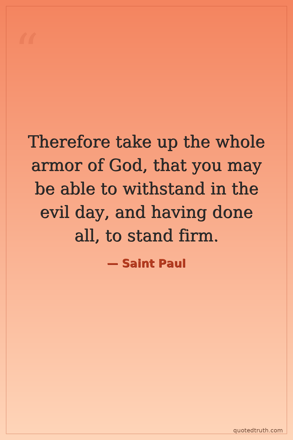 Therefore take up the whole armor of God, that you may be able to withstand in the evil day, and having done all, to stand firm.