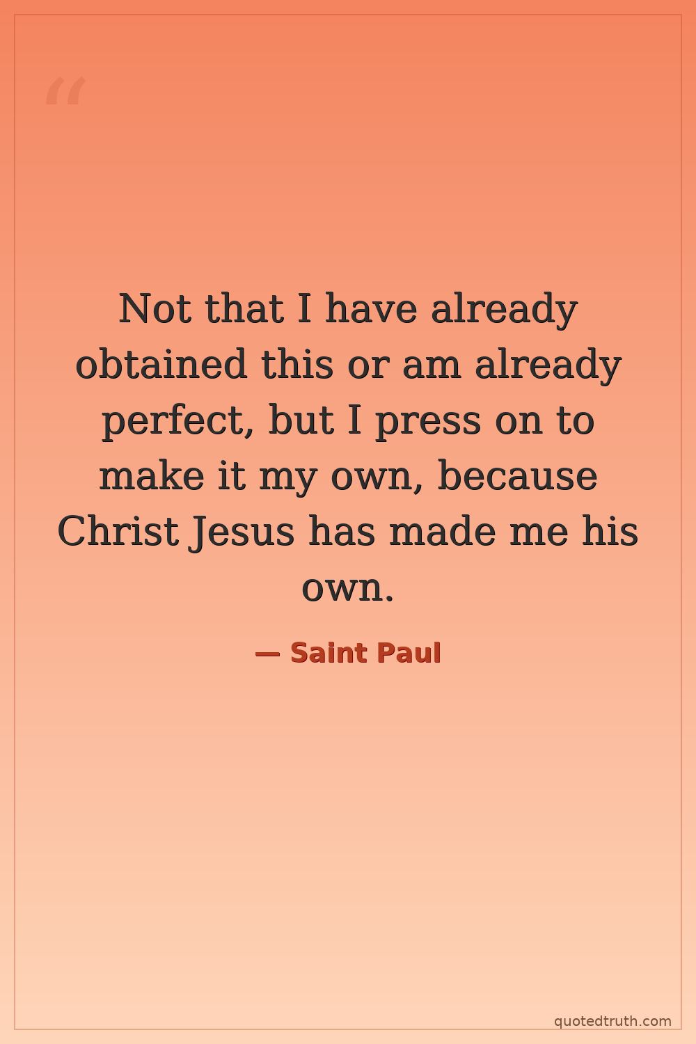 Not that I have already obtained this or am already perfect, but I press on to make it my own, because Christ Jesus has made me his own.