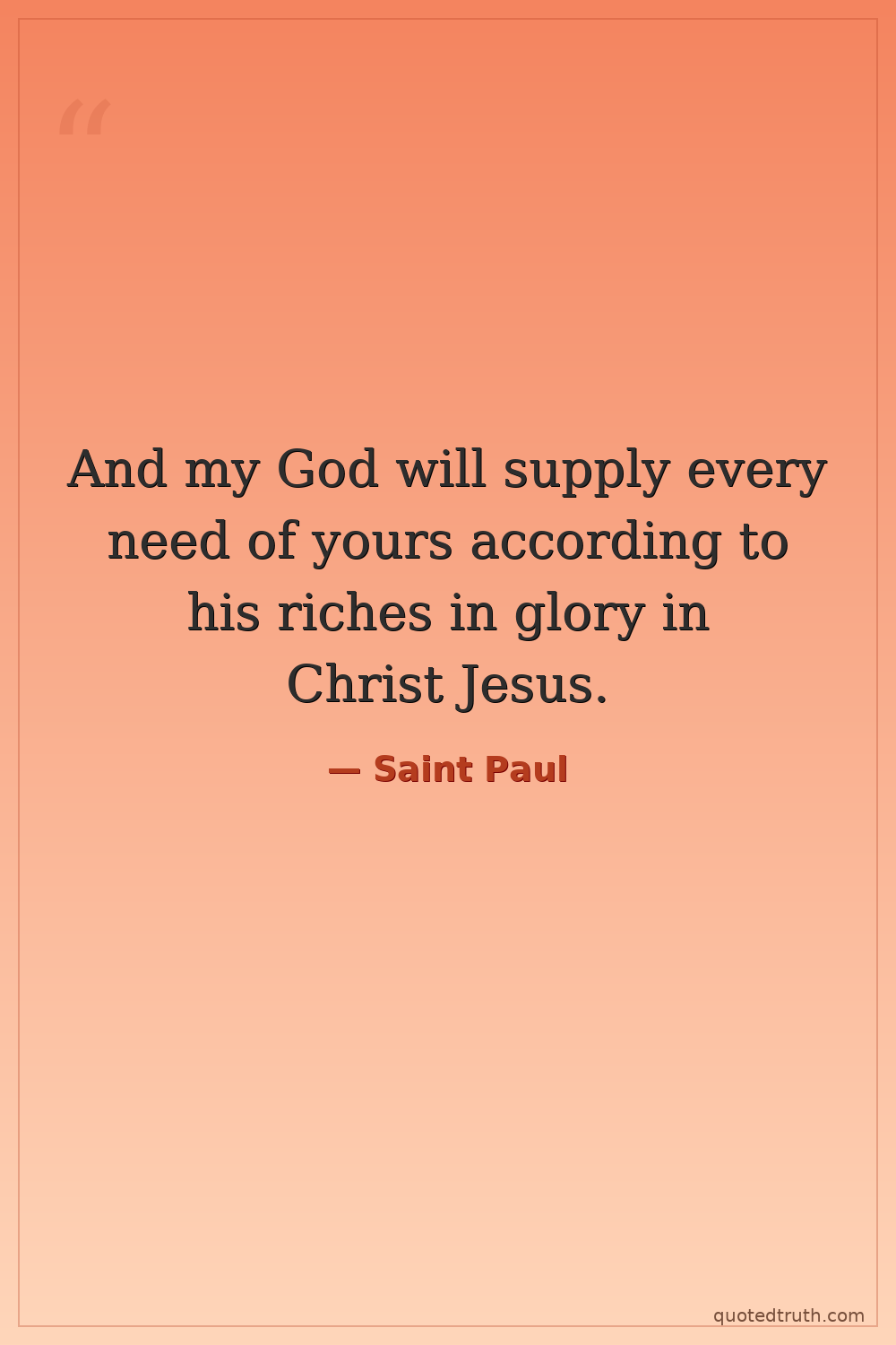 And my God will supply every need of yours according to his riches in glory in Christ Jesus.
