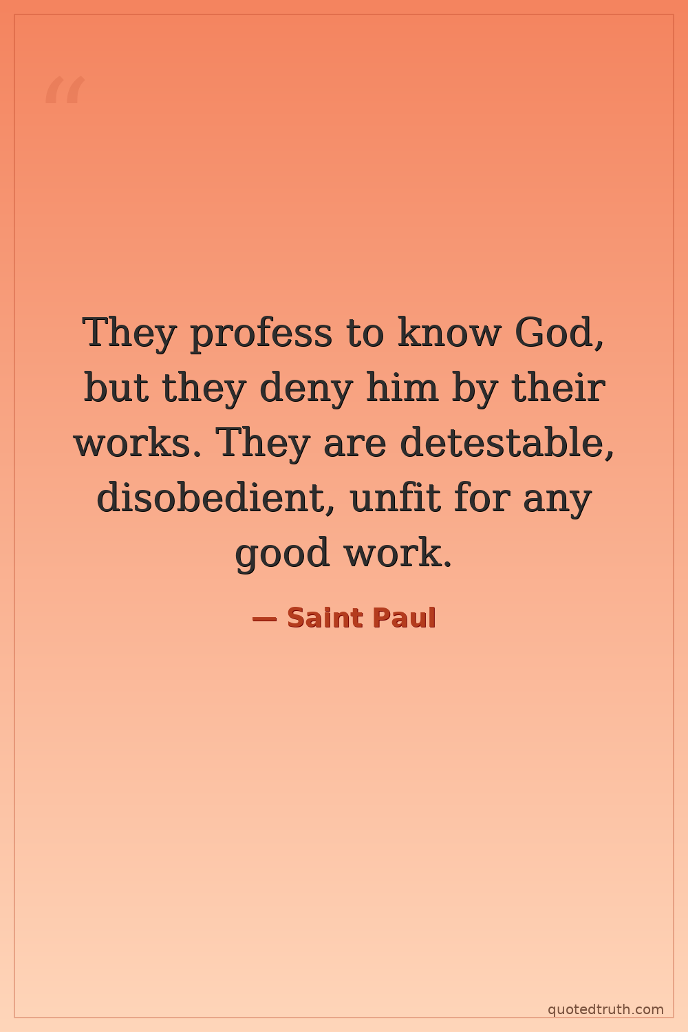They profess to know God, but they deny him by their works. They are detestable, disobedient, unfit for any good work.