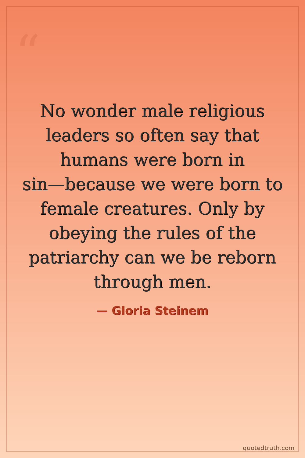 No wonder male religious leaders so often say that humans were born in sin—because we were born to female creatures. Only by obeying the rules of the patriarchy can we be reborn through men.
