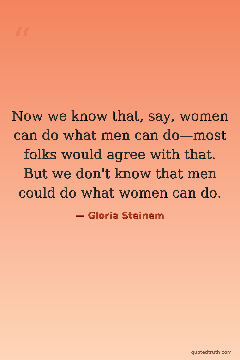 Now we know that, say, women can do what men can do—most folks would agree with that. But we don't know that men could do what women can do.