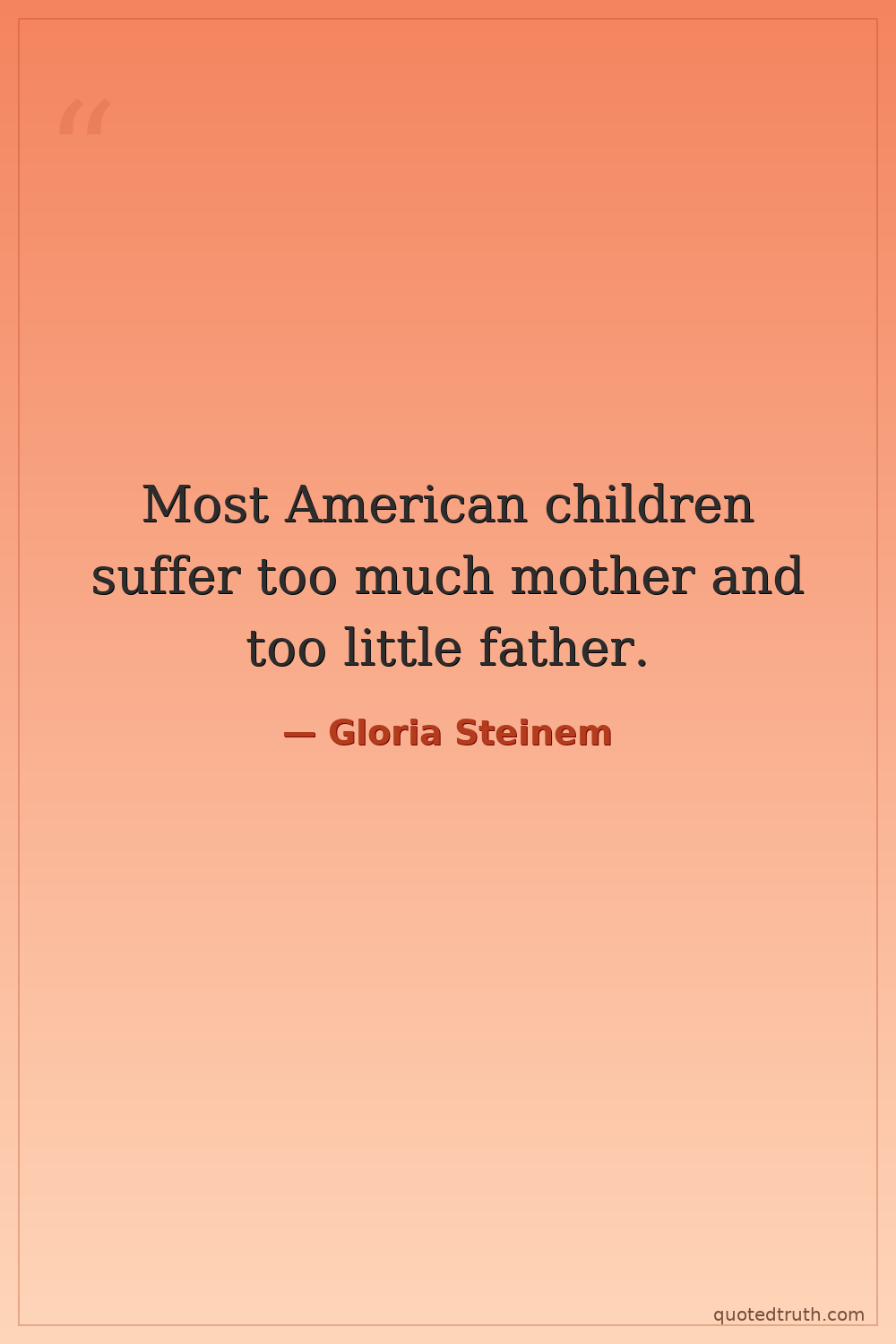Most American children suffer too much mother and too little father.