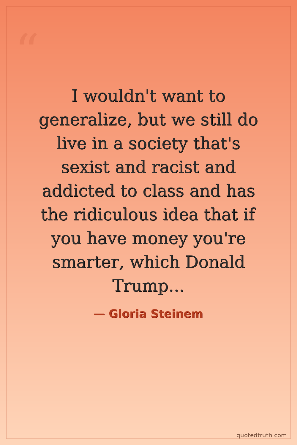 I wouldn't want to generalize, but we still do live in a society that's sexist and racist and addicted to class and has the ridiculous idea that if you have money you're smarter, which Donald Trump by himself should be able to disprove.