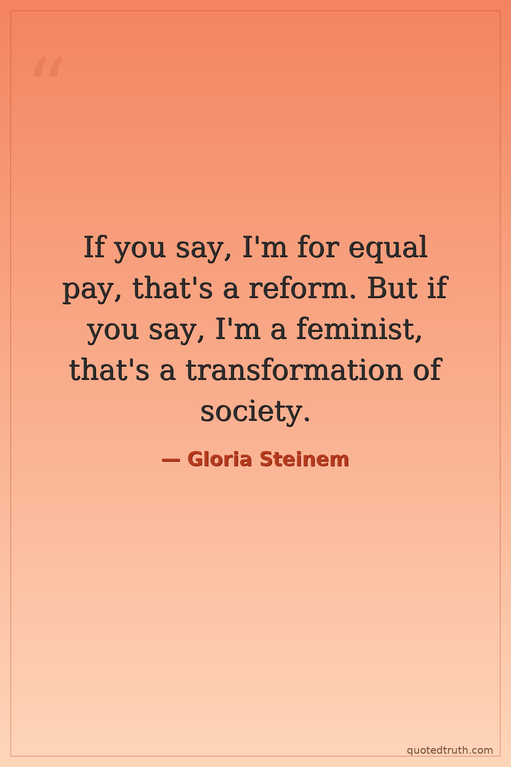If you say, I'm for equal pay, that's a reform. But if you say, I'm a feminist, that's a transformation of society.