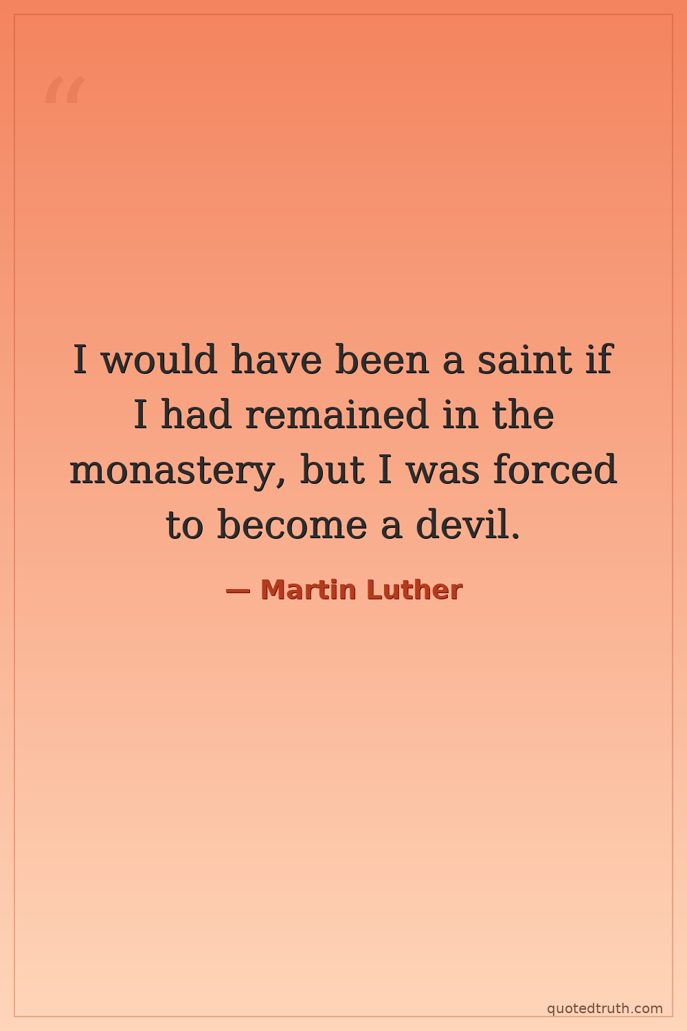 I would have been a saint if I had remained in the monastery, but I was forced to become a devil.