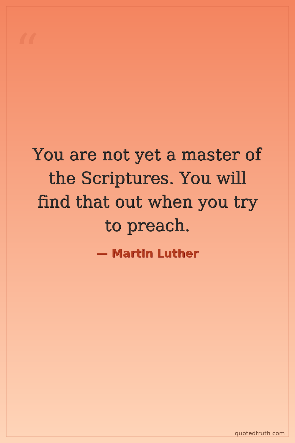 You are not yet a master of the Scriptures. You will find that out when you try to preach.
