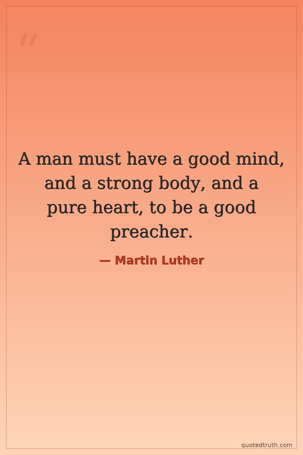 A man must have a good mind, and a strong body, and a pure heart, to be a good preacher.