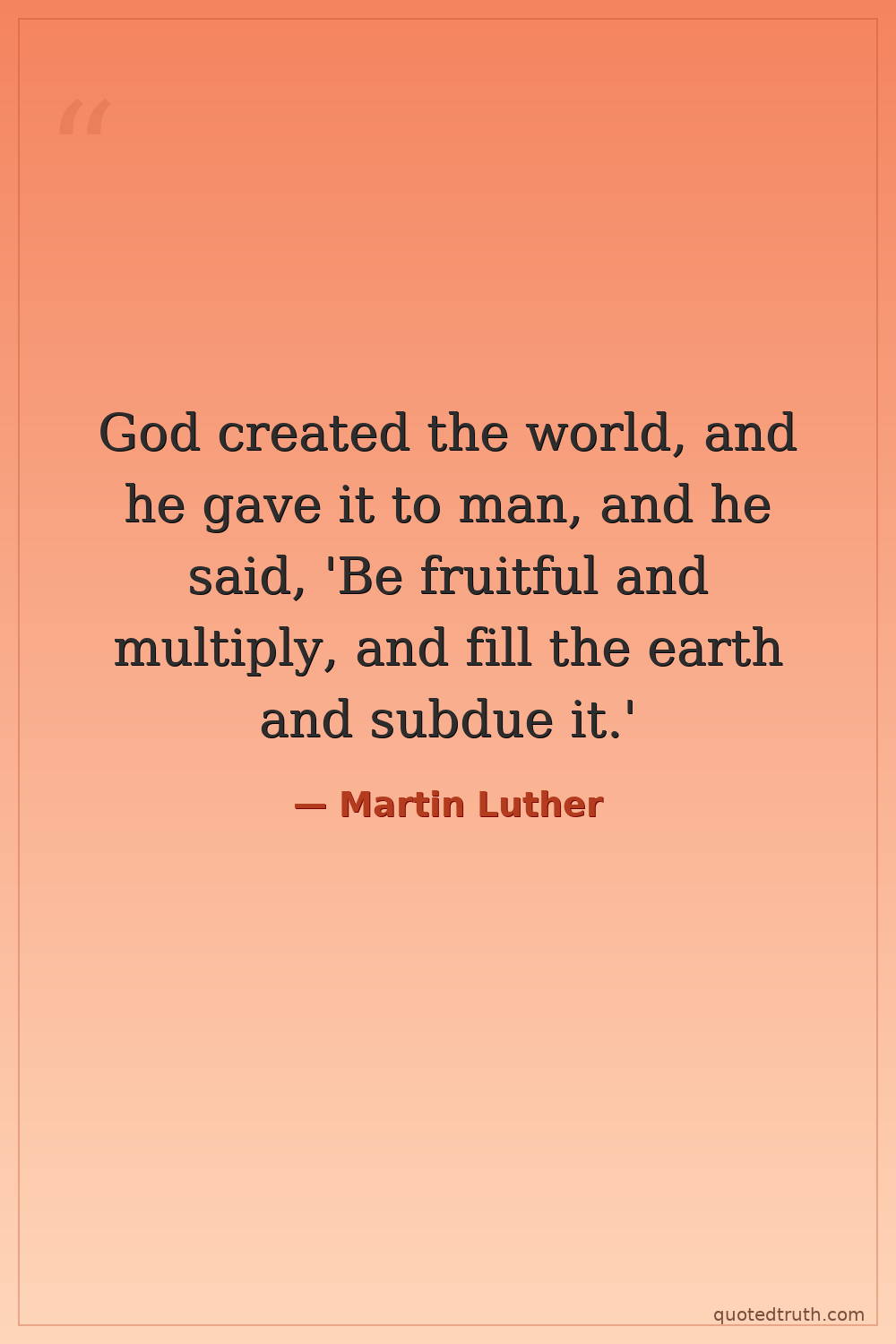 God created the world, and he gave it to man, and he said, 'Be fruitful and multiply, and fill the earth and subdue it.'