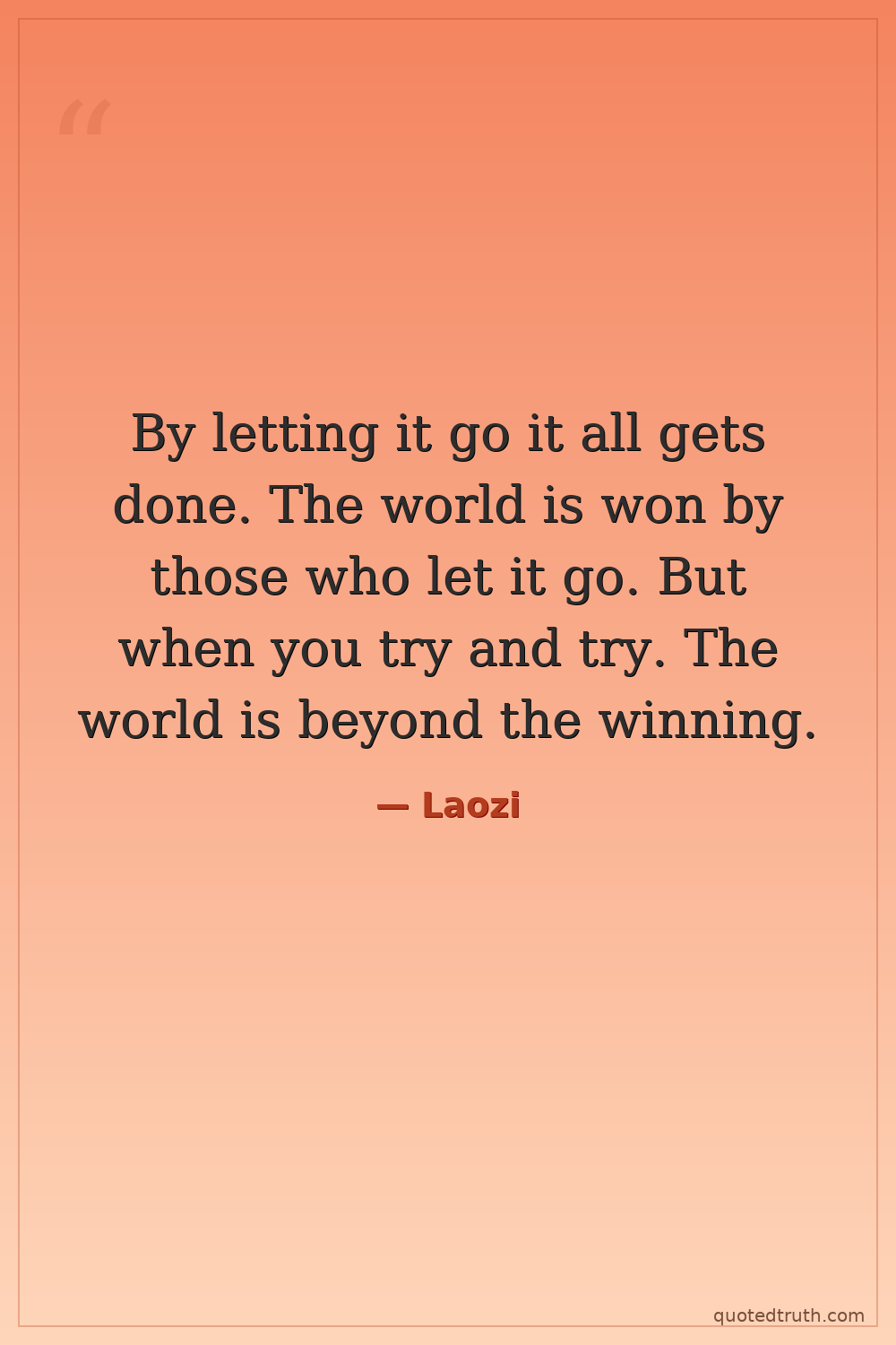 By letting it go it all gets done. The world is won by those who let it go. But when you try and try. The world is beyond the winning.