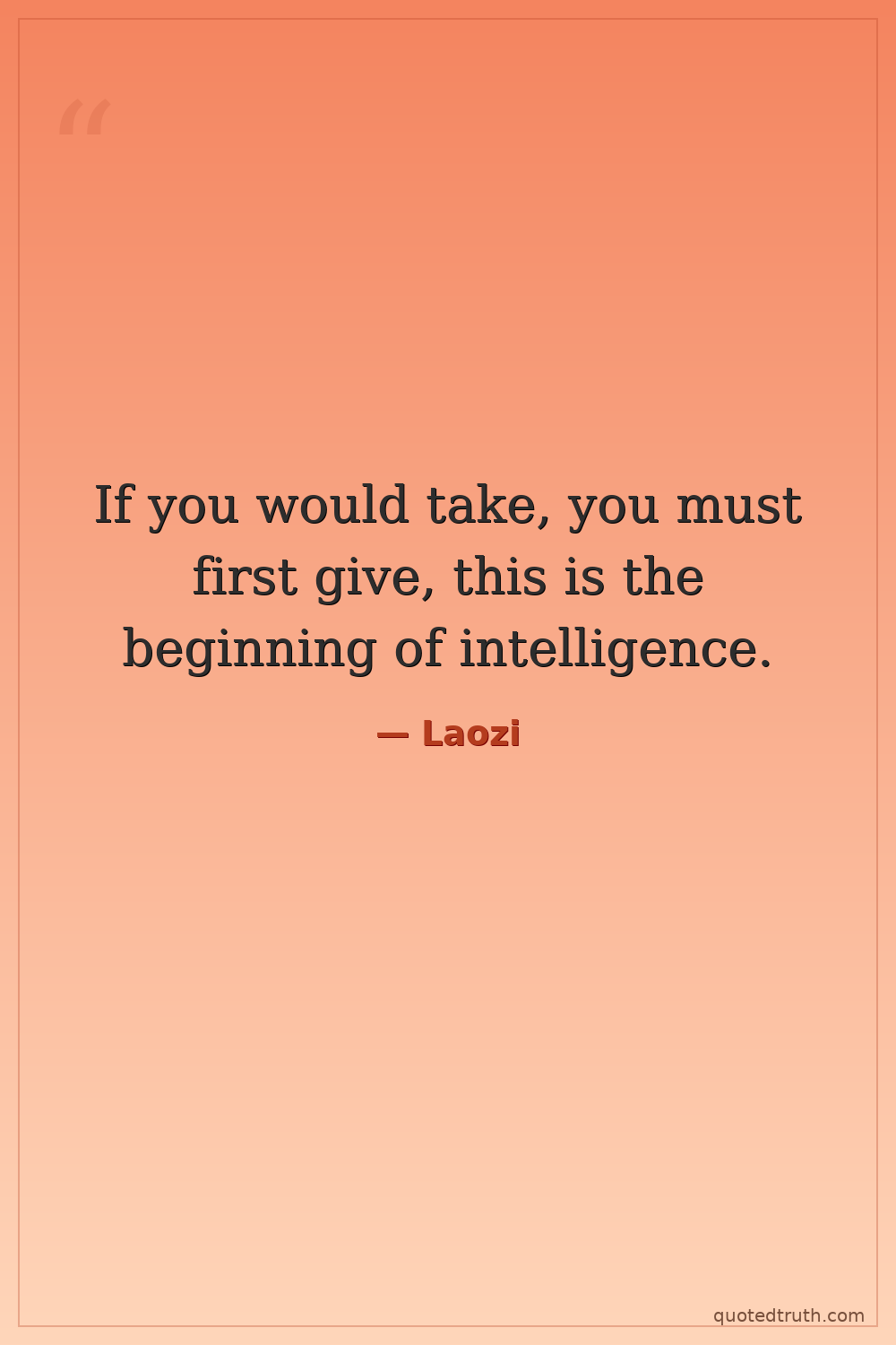 If you would take, you must first give, this is the beginning of intelligence.