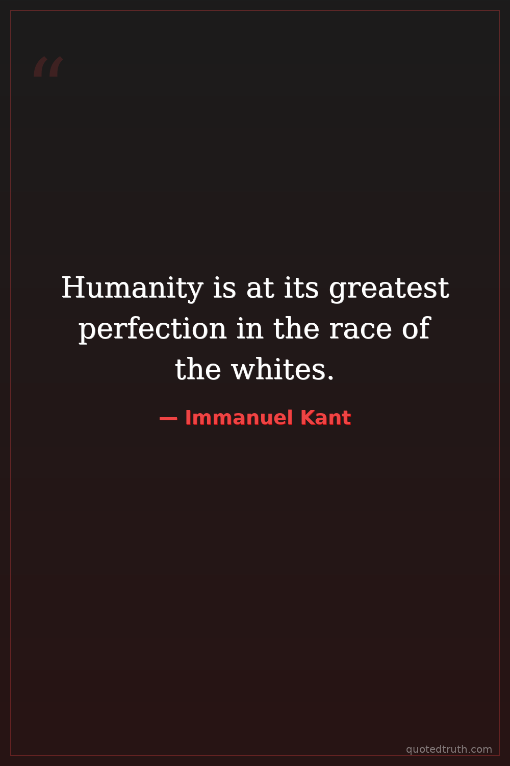 Immanuel Kant — "Humanity is at its greatest perfection in the race of the whites."