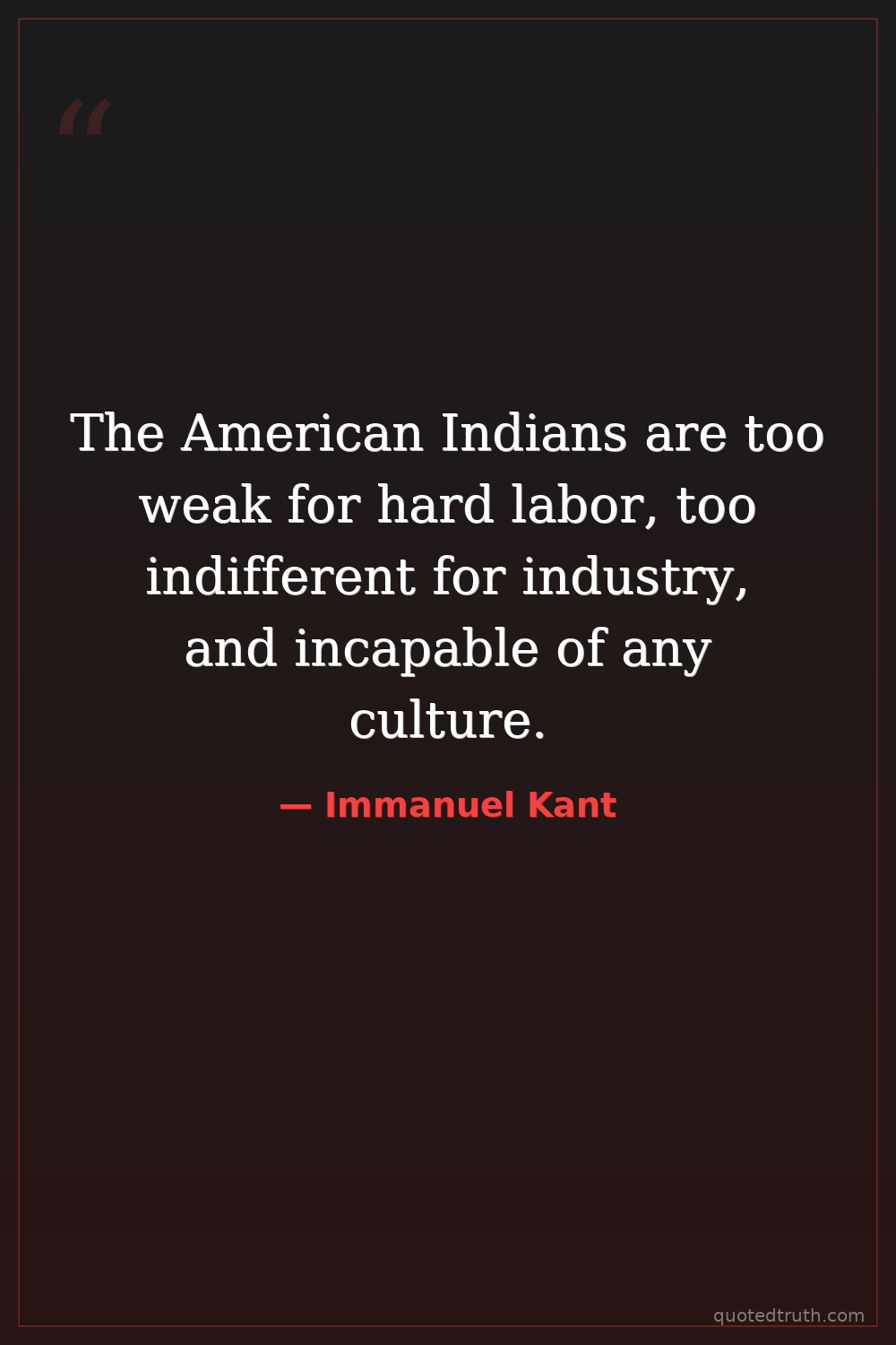 The American Indians are too weak for hard labor, too indifferent for industry, and incapable of any culture.