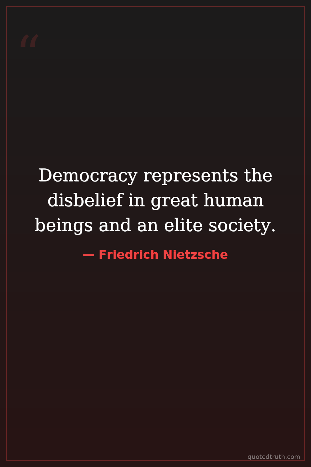Democracy represents the disbelief in great human beings and an elite society.