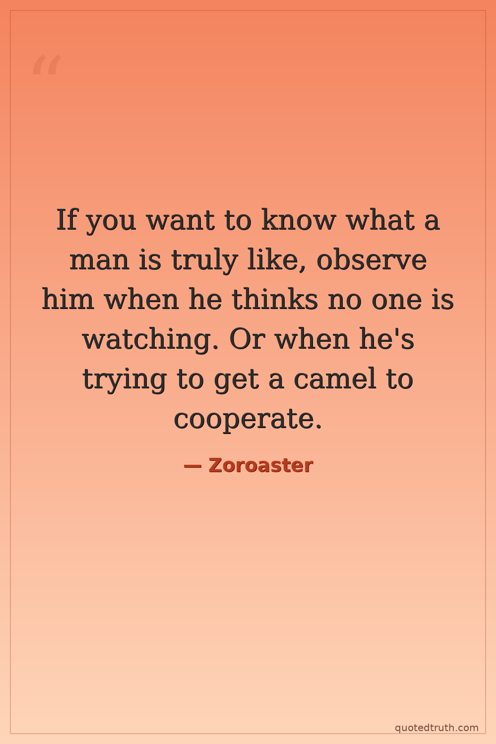 If you want to know what a man is truly like, observe him when he thinks no one is watching. Or when he's trying to get a camel to cooperate.