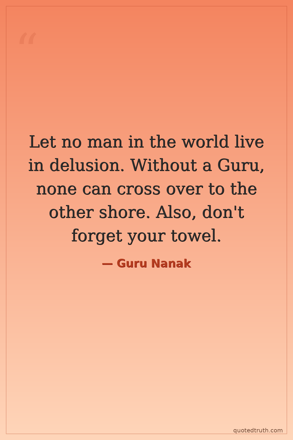 Let no man in the world live in delusion. Without a Guru, none can cross over to the other shore. Also, don't forget your towel.