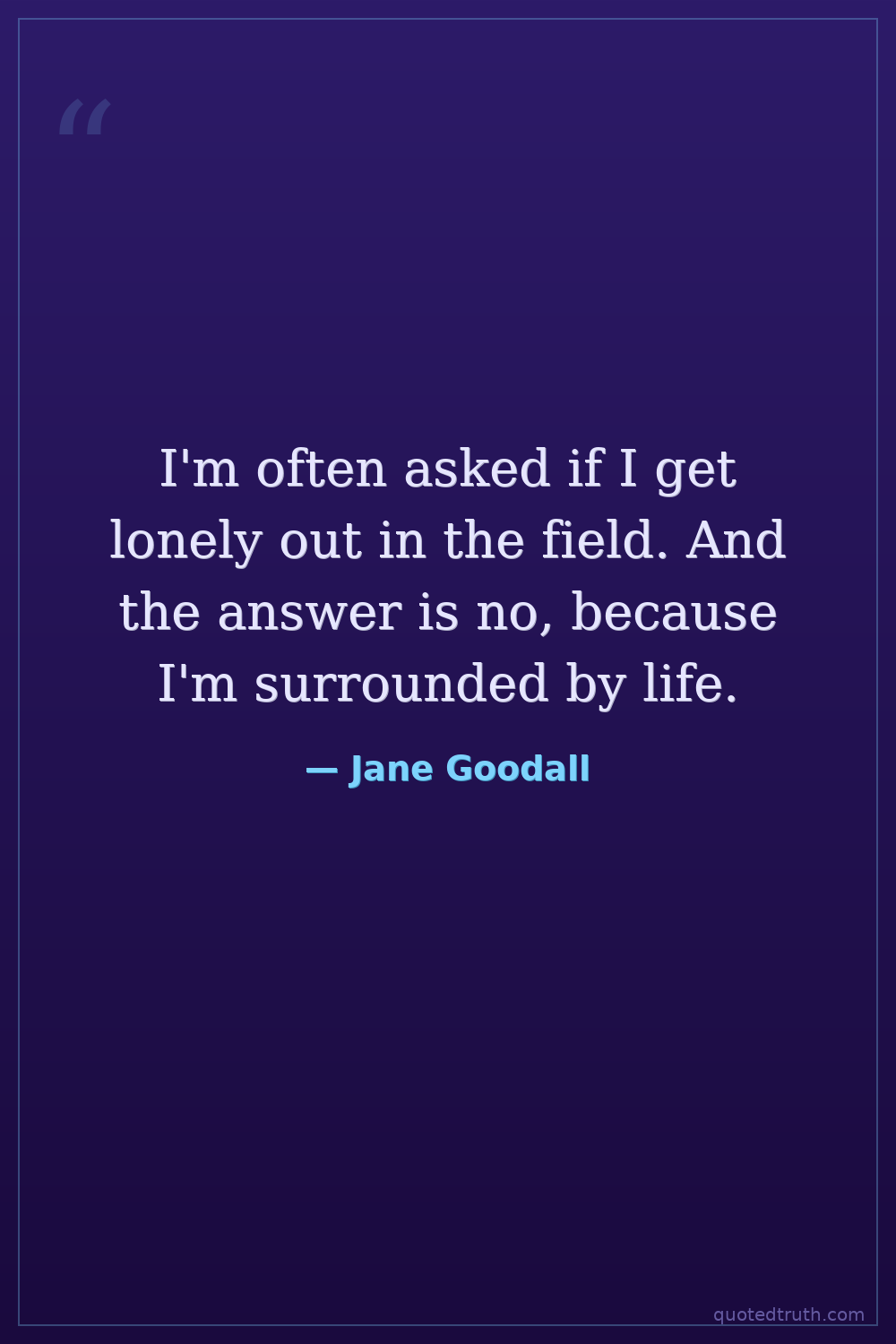 I'm often asked if I get lonely out in the field. And the answer is no, because I'm surrounded by life.