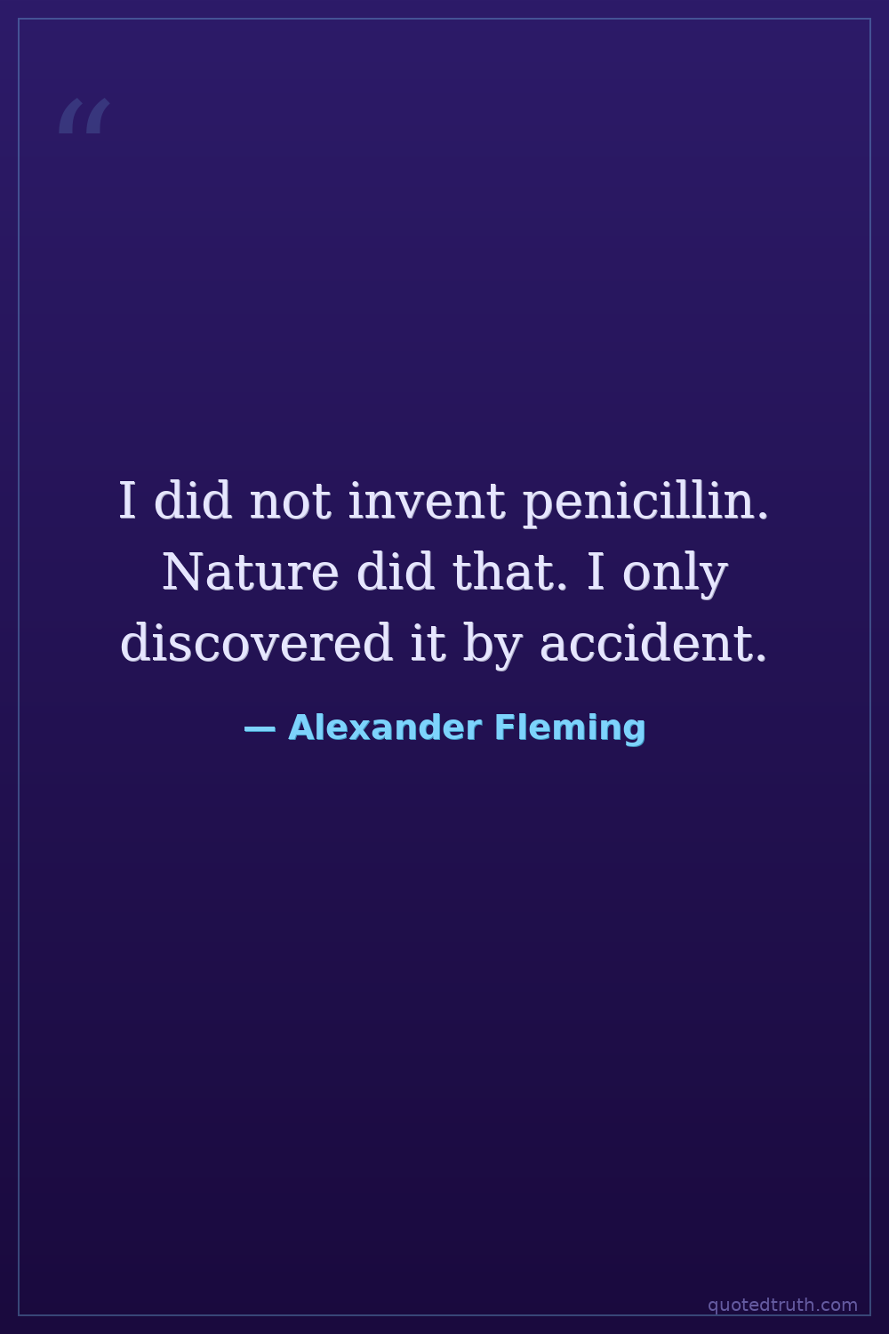 I did not invent penicillin. Nature did that. I only discovered it by accident.