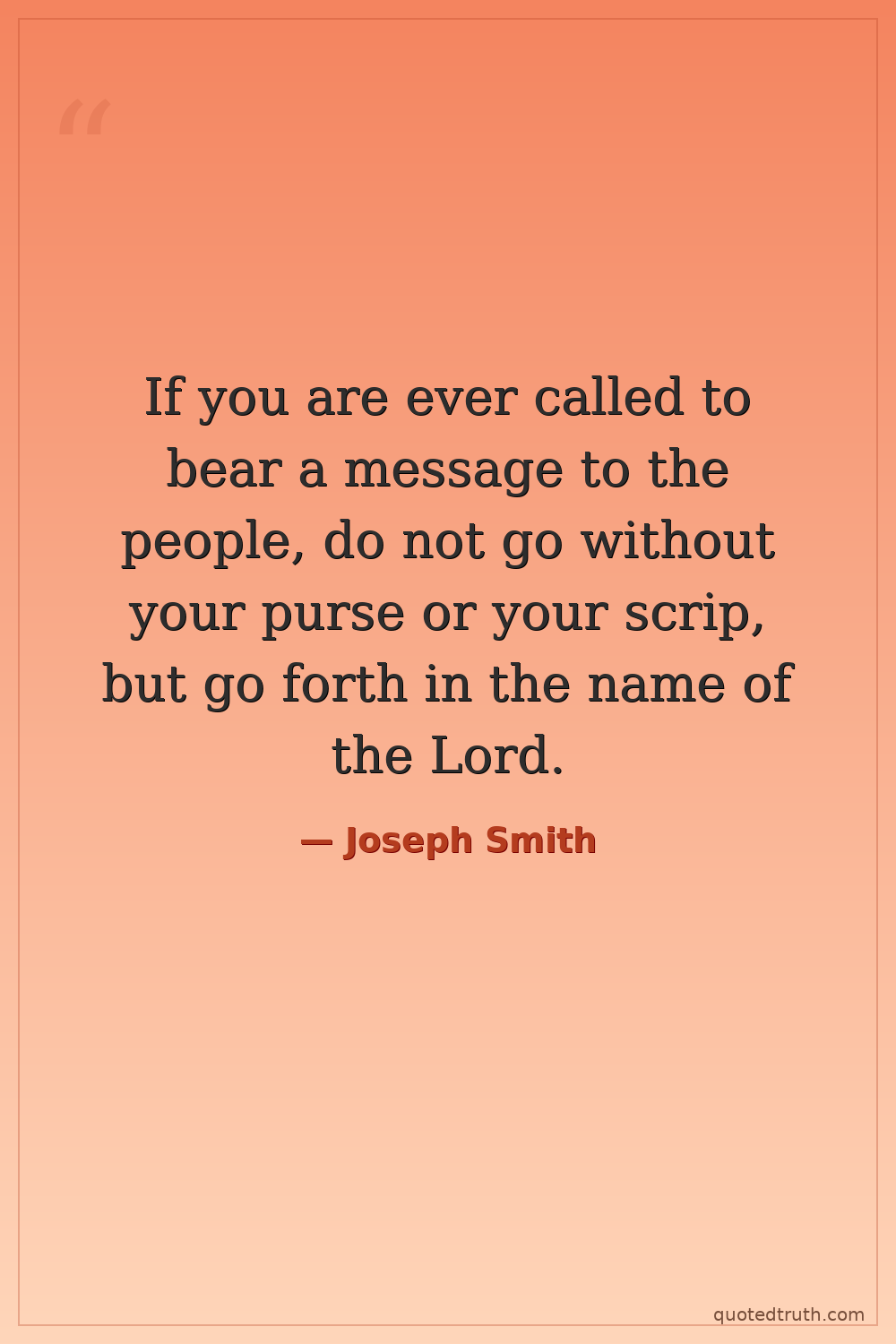 If you are ever called to bear a message to the people, do not go without your purse or your scrip, but go forth in the name of the Lord.