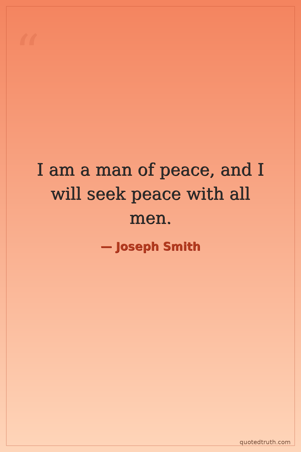 I am a man of peace, and I will seek peace with all men.