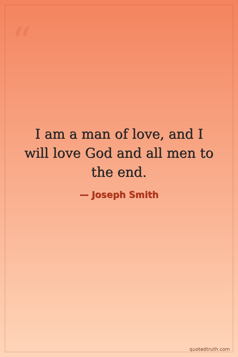 I am a man of love, and I will love God and all men to the end.