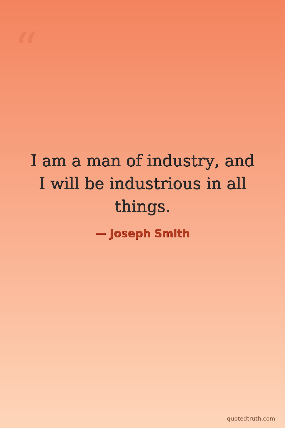 I am a man of industry, and I will be industrious in all things.