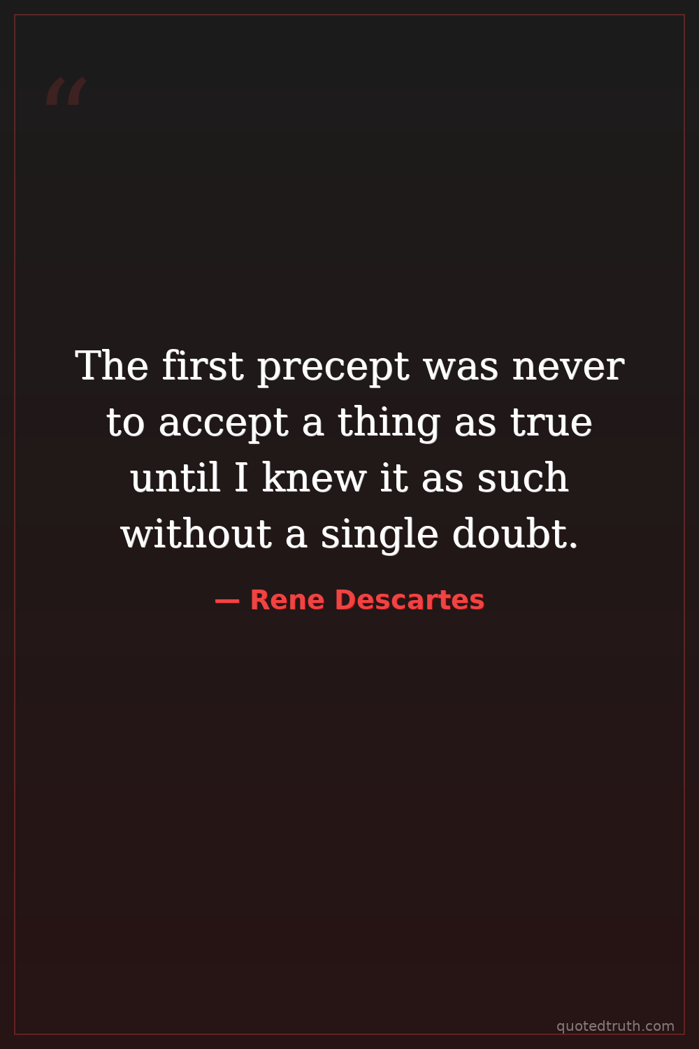 The first precept was never to accept a thing as true until I knew it as such without a single doubt.