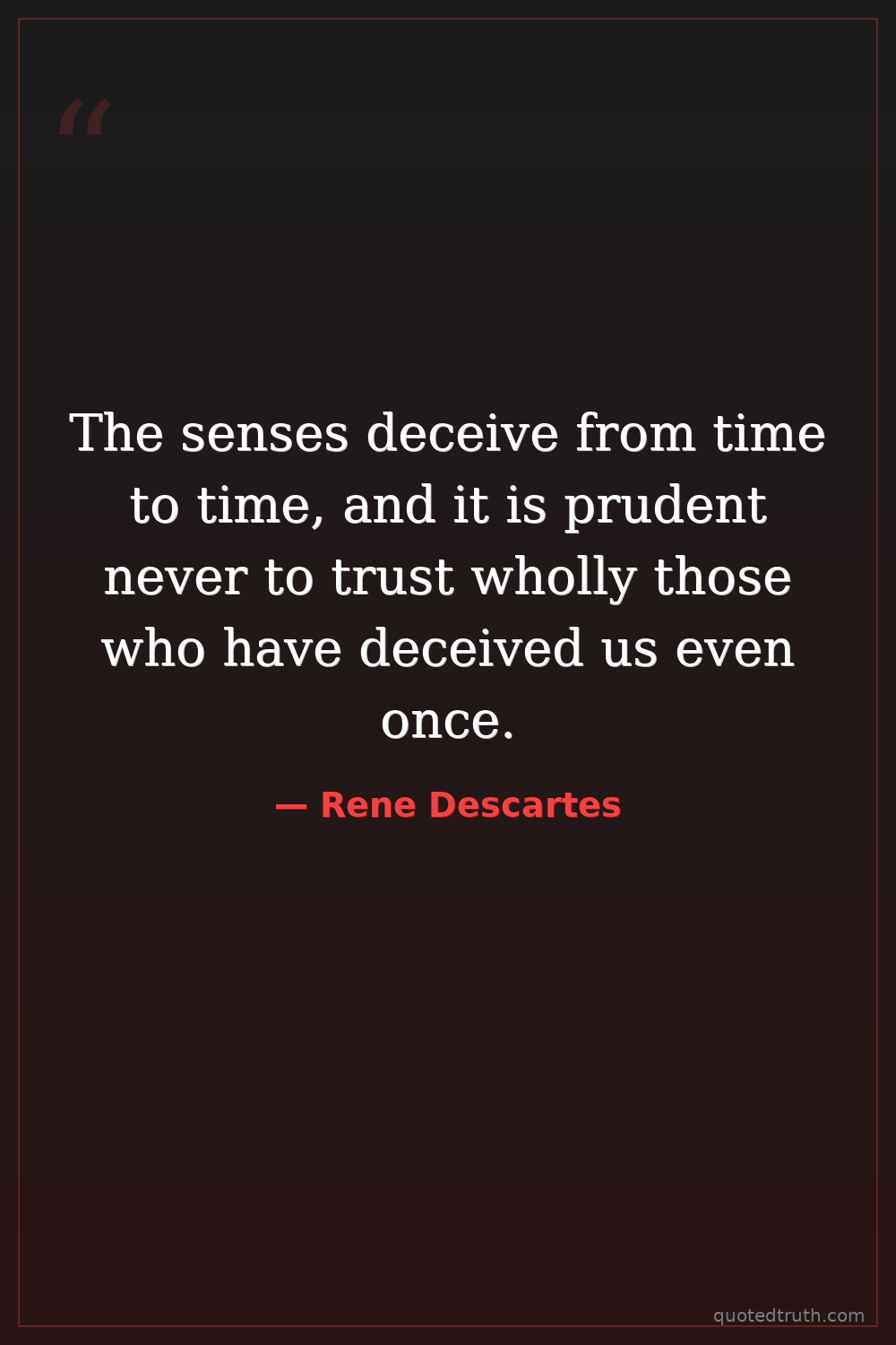 The senses deceive from time to time, and it is prudent never to trust wholly those who have deceived us even once.