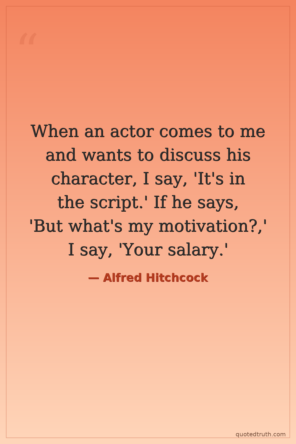 When an actor comes to me and wants to discuss his character, I say, 'It's in the script.' If he says, 'But what's my motivation?,' I say, 'Your salary.'