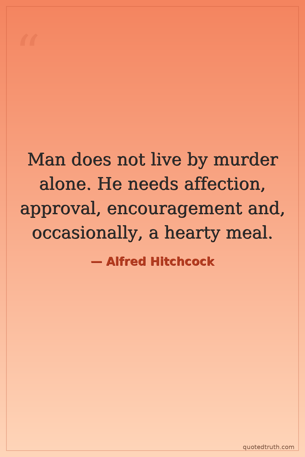 Man does not live by murder alone. He needs affection, approval, encouragement and, occasionally, a hearty meal.