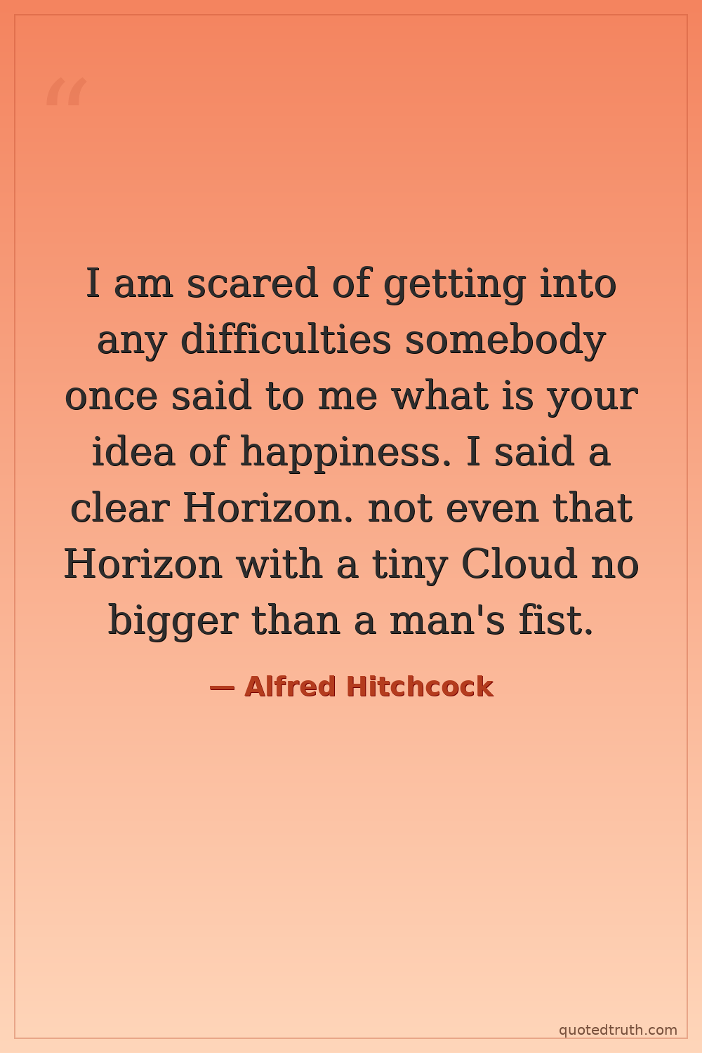 I am scared of getting into any difficulties somebody once said to me what is your idea of happiness. I said a clear Horizon. not even that Horizon with a tiny Cloud no bigger than a man's fist.