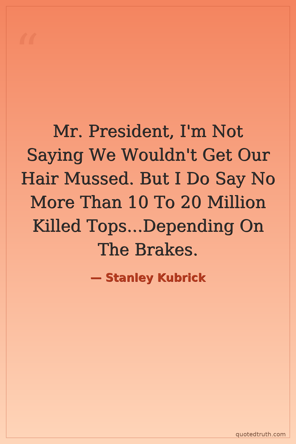 Mr. President, I'm Not Saying We Wouldn't Get Our Hair Mussed. But I Do Say No More Than 10 To 20 Million Killed Tops...Depending On The Brakes.